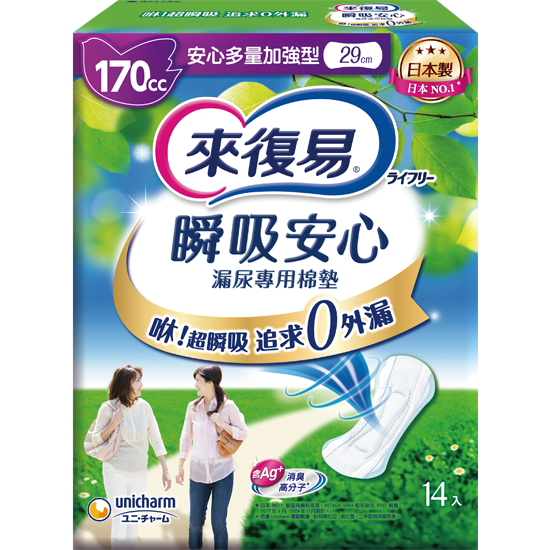 原本使用衛生棉都很擔心外漏,也不敢去太遠的地方,怕有個萬一就要馬上回家處理。改用了瞬吸安心後,因為吸收力真的很快又很好,就算漏尿了也不會覺得濕濕的不舒服,現在可以自在外出不用擔心了!